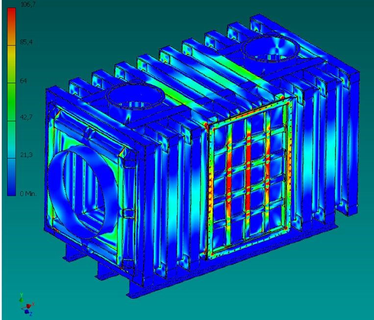 • Druckbehälterberechnungen nach AD2000, EN 13445-3, ASME VIII, Div. 1 + 2 mit Dimy, PV-Elite, NozzlePro, FEM